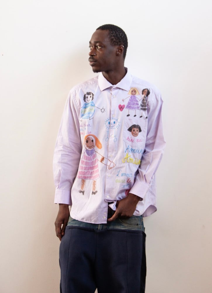 "OOPS DAD I DREw EVERYWHERE "Every shirt are made by hand by Agnès NGAN YEM MOUMBE ( NES) in Paris.They are all unique in their own way love them as they are like your new teddy bear 🧸🪡⚠️ ( EVERY SHIRTS HAVE A UNIQUE BRODERIE MADE WITH HOT GLUE BY HANDS ) 🫶🏾 by Grace KOUADJA in Paris.DO NOT WASH THEM AT MORE THAN 20-30 DEGREES 🧽🧼Unisexe.Each piece are uniques pieces email us after order for a special custom like ad your name or nickname 📝